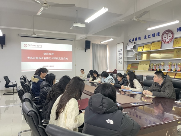 1月16日,青岛东海药业有限公司代表一行来我院进行走访交流。太阳成集团tyc7111cc辅导员于露、各年级辅导员及相关专业本科生、研究生代表积极参与。双方围绕企业人才需求、学生实习实践基地建设及校企协同育人等议题展开深入沟通。