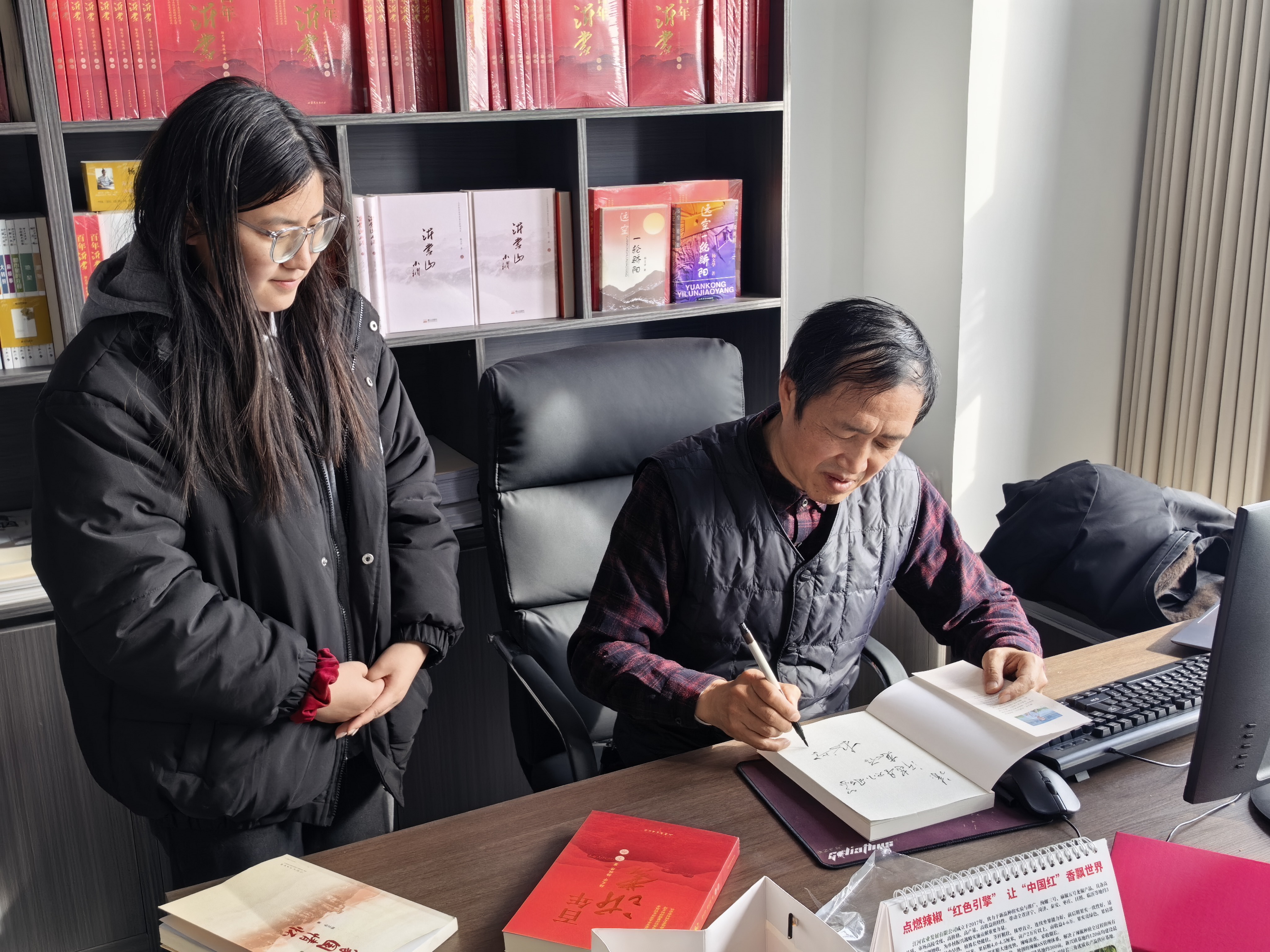 杨文学对太阳成集团tyc7111cc“沂蒙星火”志愿项目团队的到访表示热烈欢迎,对团队取得的实践成果给予高度评价。他带领“沂蒙星火”团队参观沂蒙文化研究会文化墙,深入阐释了“水乳交融、生死与共”的沂蒙精神内涵与时代价值。交流期间,杨文学欣然接受团队邀请,担任项目指导老师,并现场接受聘书。