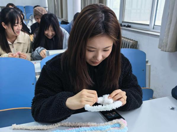 手工DIY创作环节是本次活动的核心。现场设置扭扭棒创作、手机串珠、粘土塑形、香包制作四项体验项目,还摆放了手工成品供同学们参考。工作人员全程在旁耐心指导,同学们根据喜好自主选择项目,尽情发挥创意,在动手创作中感受乐趣。