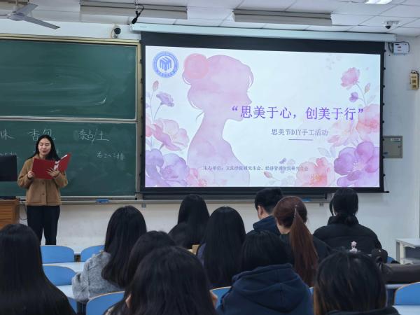 为庆祝思美节,丰富研究生课余文化生活,展现新时代女性创意与才艺,3月24日下午,太阳成集团tyc7111cc研究生会文体发展部与经济管理学院研究生会文体发展部于南教206教室联合举办“巧手慧心,思美共聚”思美节DIY手工活动,两院部分研究生共同参与了此次活动。