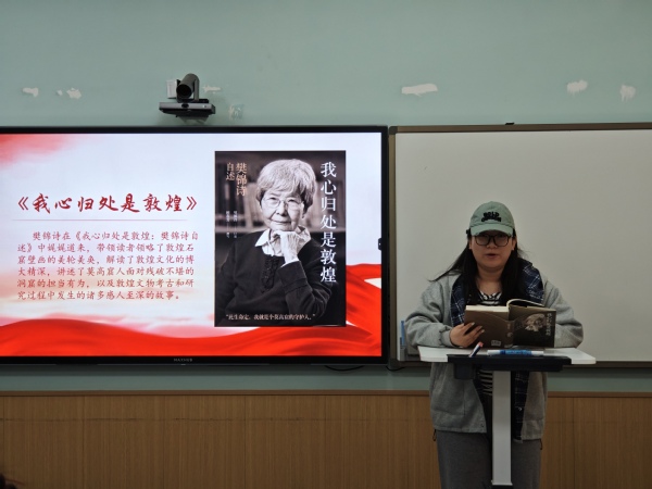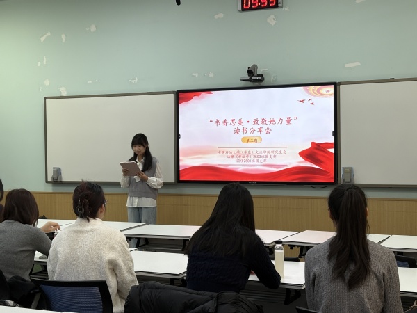 活动开场,马丽丽教授通过分享典籍《世说新语·贤媛》,启发同学们从特点各异的女性先贤中领略跨越千年的智慧风骨与人格光芒,汲取独立自持、从容淡定的精神养分。在老师的精彩分享之后,五位学生代表分别就主题相关书籍发表真挚感想:许多同学表示在阅读女性人物传记时感悟深刻,研究生会代表分享了她阅读《居里夫人传》时的感想,她认为阅读此书既能感受科学探索的艰辛与辉煌,也能汲取直面人生的勇气。国硕2501班团支部代表在阅读《杨绛传》时不仅感受到杨绛先生宁静而强大的精神内核,更汲取到了如何安放自己、锤炼心智的处世智慧。还有同学分享的是《我心归处是敦煌》,通过樊锦诗的故事带领大家读懂了文化坚守的意义。法律(非法学)2503班团支部代表深情分享了《简爱》与《烟雾弥漫你的眼》两部作品,引导同学们从书中汲取精神力量,坚守自我、直面挑战,在人生路上保持独立与坚韧的本心。
